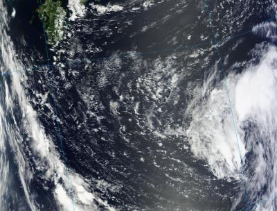 Out over the open waters of the northwestern Pacific Ocean, newborn Tropical Depression Haikui was getting organized. On August 3 at 1500 UTC (11 a.m. EDT) Haikui's maximum sustained winds were near 30 knots 34.5 mph/55.5 kmh). It was located 580 nautical miles east of Kadena Air Base, Okinawa, Japan, and is moving to the west-northwest at 13 knots (~15 mph/24 kmh). The Joint Typhoon Warning Center forecast calls for Haikui to pass just north of Kadena Air Base on August 5 and slowly intensify.