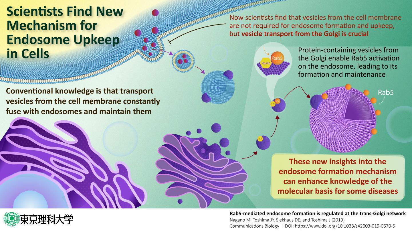image: Formation and maintenance of the endosome -- the organelle for distributing inbound substances -- are governed by a newly discovered cellular mechanism.