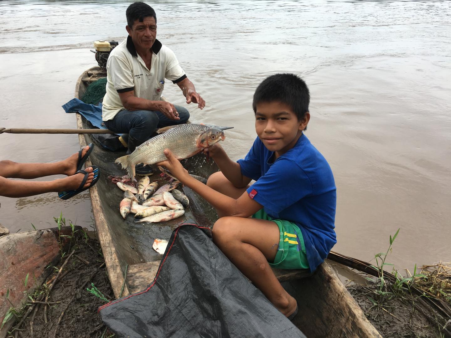 image: Landing a catch along the Ucayali River in the Loreto department of the Peruvian Amazon. The boy is holding a boquichico, a commonly consumed species. (All photos: Sebastian Heilpern)