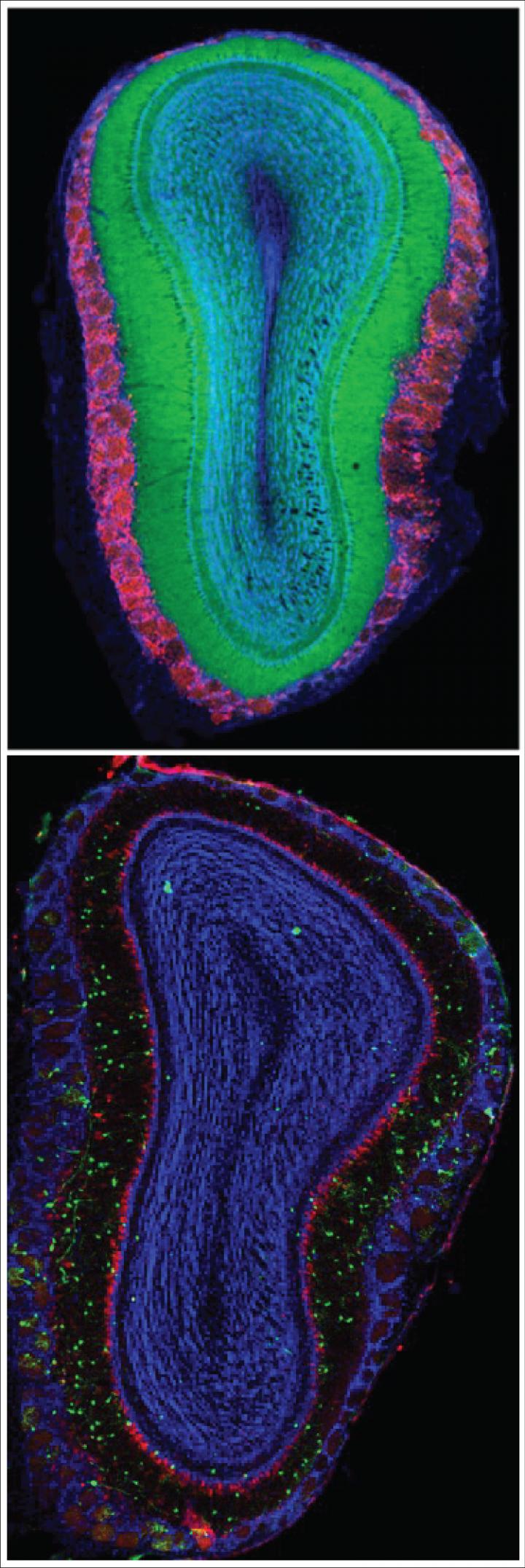 image: Fluorescent immunochemistry staining of an olfactory bulb slice from mouse.