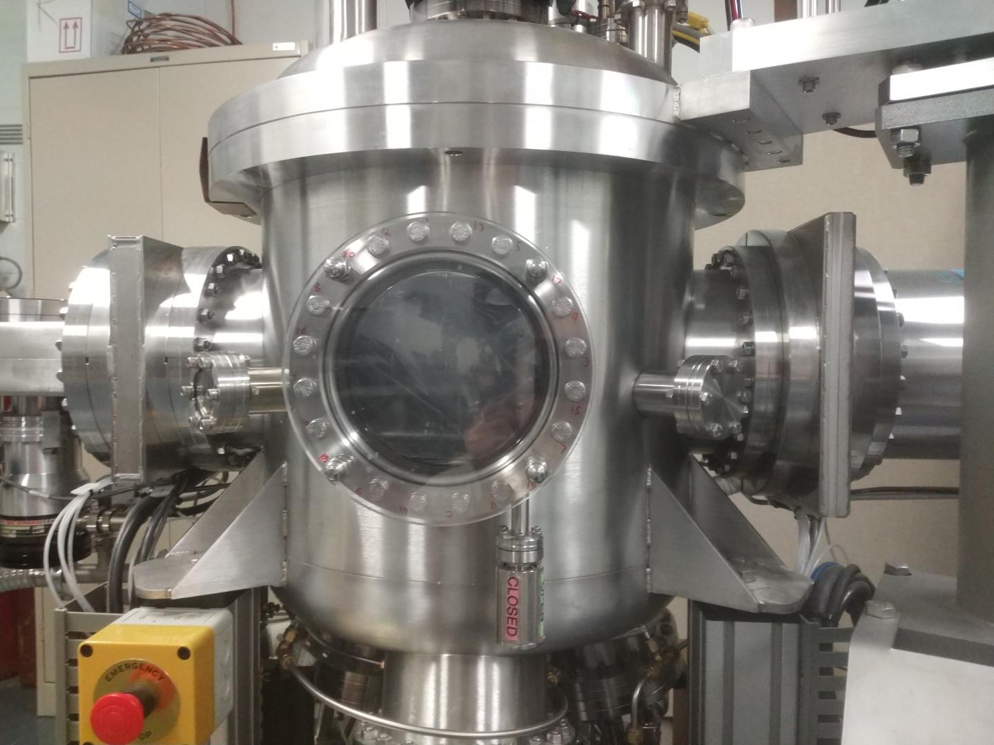 image: Magnetron-sputtering based plasma reactor used for the preparation of the photoelectrodes of titanium oxide co-doped with nitrogen and tungsten.
