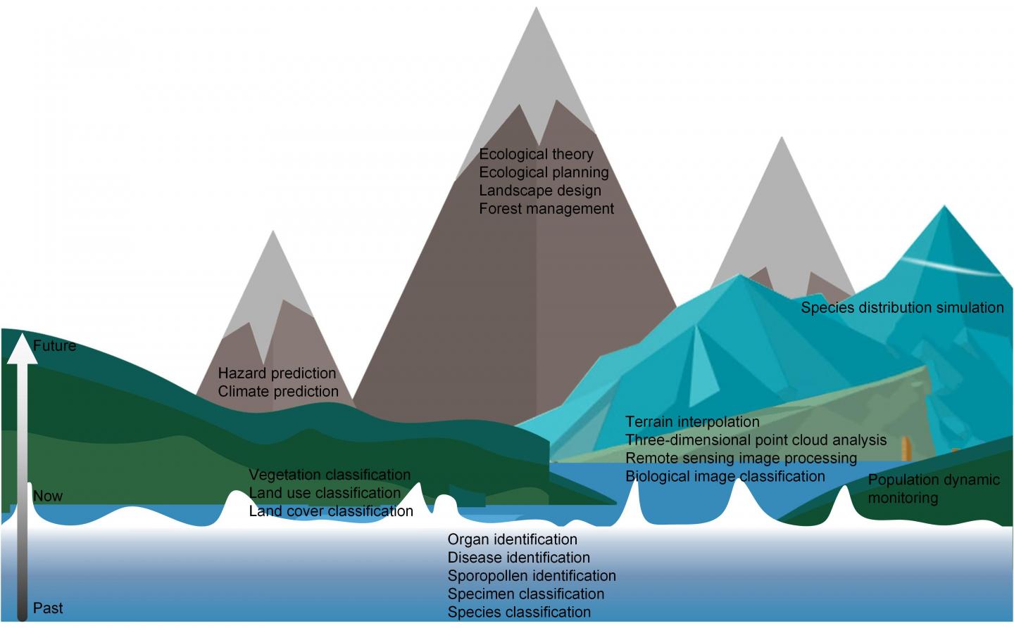 image: Ecological resource areas that are impacted and overwhelmed by deep learning (water part) and the areas need to be solved (mountain part)