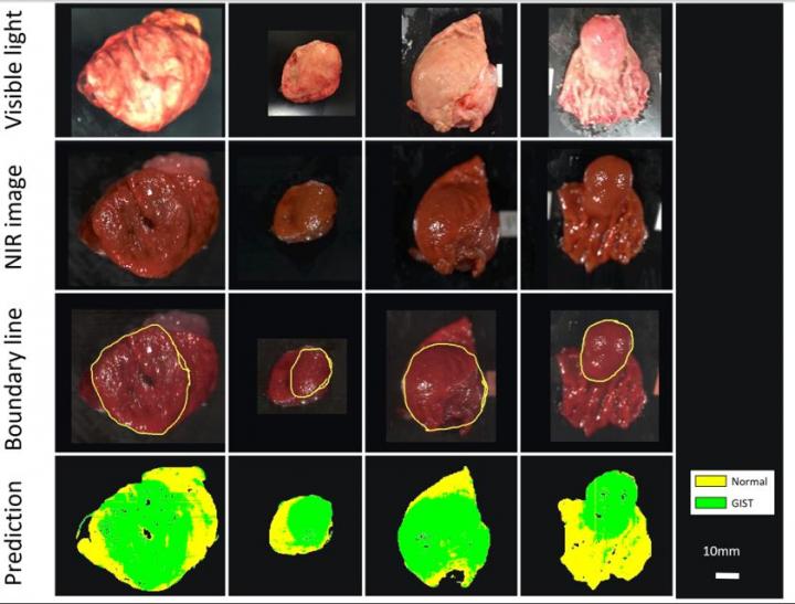 Dr. Takemura's team performed imaging experiments on 12 patients with confirmed cases of GISTs, who had their tumors removed through surgery. The scientists imaged the excised tissues using NIR-HSI, and then had a pathologist examine the images to determine the border between normal and tumor tissue. These images were then used as training data for a machine-learning algorithm, essentially teaching a computer program to distinguish between the pixels in the images that represent normal tissue versus those that represent tumor tissue.