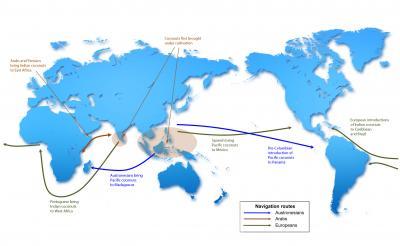 He was in for a surprise. It turned out that there are two clearly differentiated populations of coconuts, a finding that strongly suggests the coconut was brought under cultivation in two separate locations, one in the Pacific basin and the other in the Indian Ocean basin. What's more, coconut genetics also preserve a record of prehistoric trade routes and of the colonization of the Americas.
