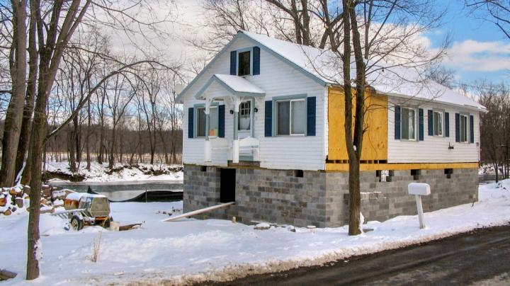 image: House being elevated to protect against flooding on Shawangunk Kill near the Hudson River in New York.