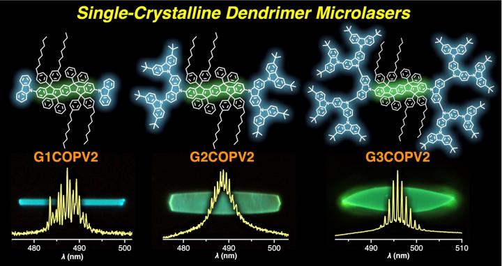 "The family of dendrimers we produced remedies a number of issues that have prevented the properties of these materials being exploited. We therefore expect them to make a significant contribution to the development of organic materials for laser optics," says Professor Yamamoto. "The robust properties and laser emission of the crystals will be useful for components such as full-color optical displays and micro-optical circuits."