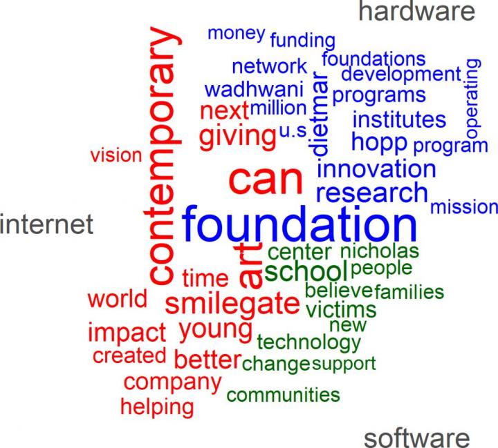 image: Fig 10. The 50 most frequently used words in foundations' mission statements by tech cohort.