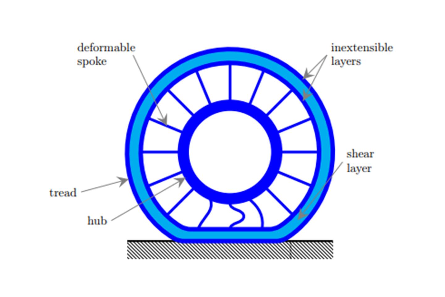 The goal is a tire design that can withstand pressure but is also elastic to provide a ride that doesn't feel like you're driving on tires made of steel.