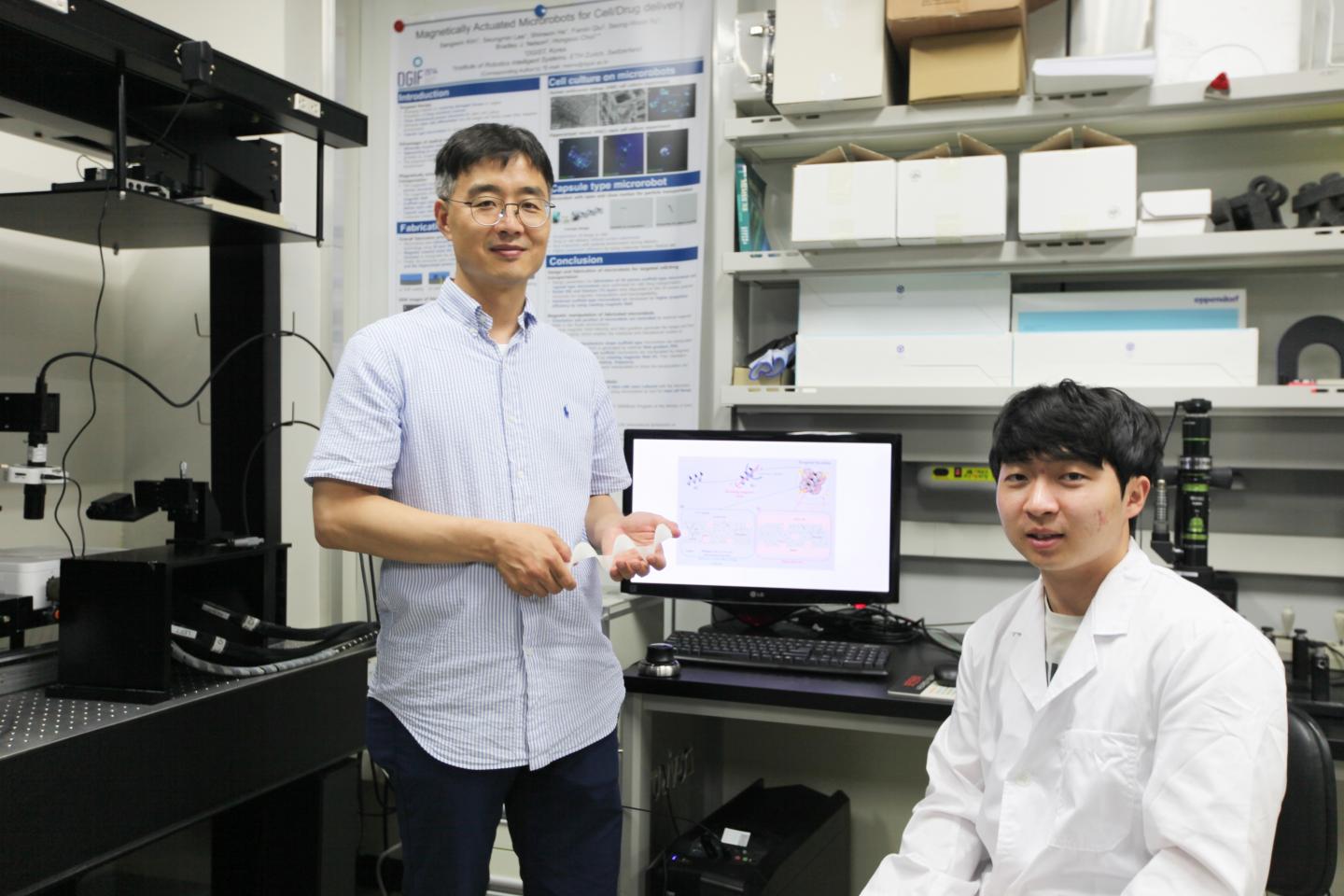image: Professor Hongsoo Choi in the Department of Robotics Engineering (left), Combined degree student Jongeon Park (right).