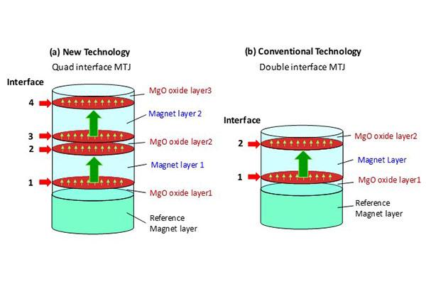 The research team, led by Professor Tetsuo Endoh, has developed a new magnetic tunnel junction with a highly reliability for STT-MRAM at reduced dimensions of 1Xnm technology node. To increase the thermal stability factor, it is necessary to increase the interfacial magnetic anisotropy originating at the CoFeB/MgO interface.