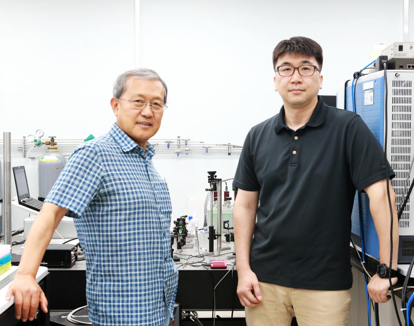 image: Chair-professor Dae Won Moon in the Department of New Biology (left) and Research Fellow Jae Young Kim in the Department of Robotics Engineering (right)