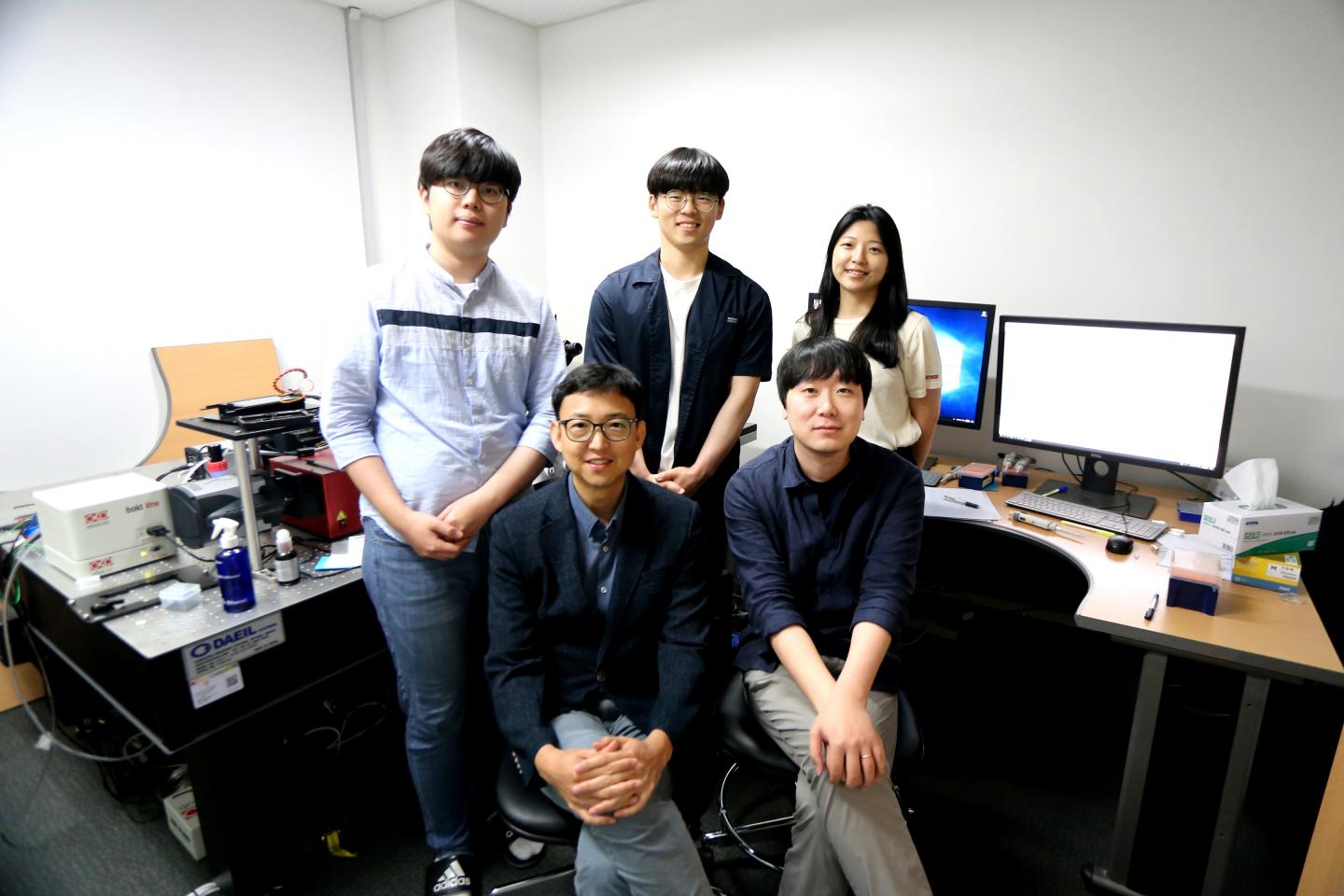 image: Professor Jaeheung Cho (front left) -- Professor Daeha Seo (front right), and research team in the Department of Emerging Materials Science.