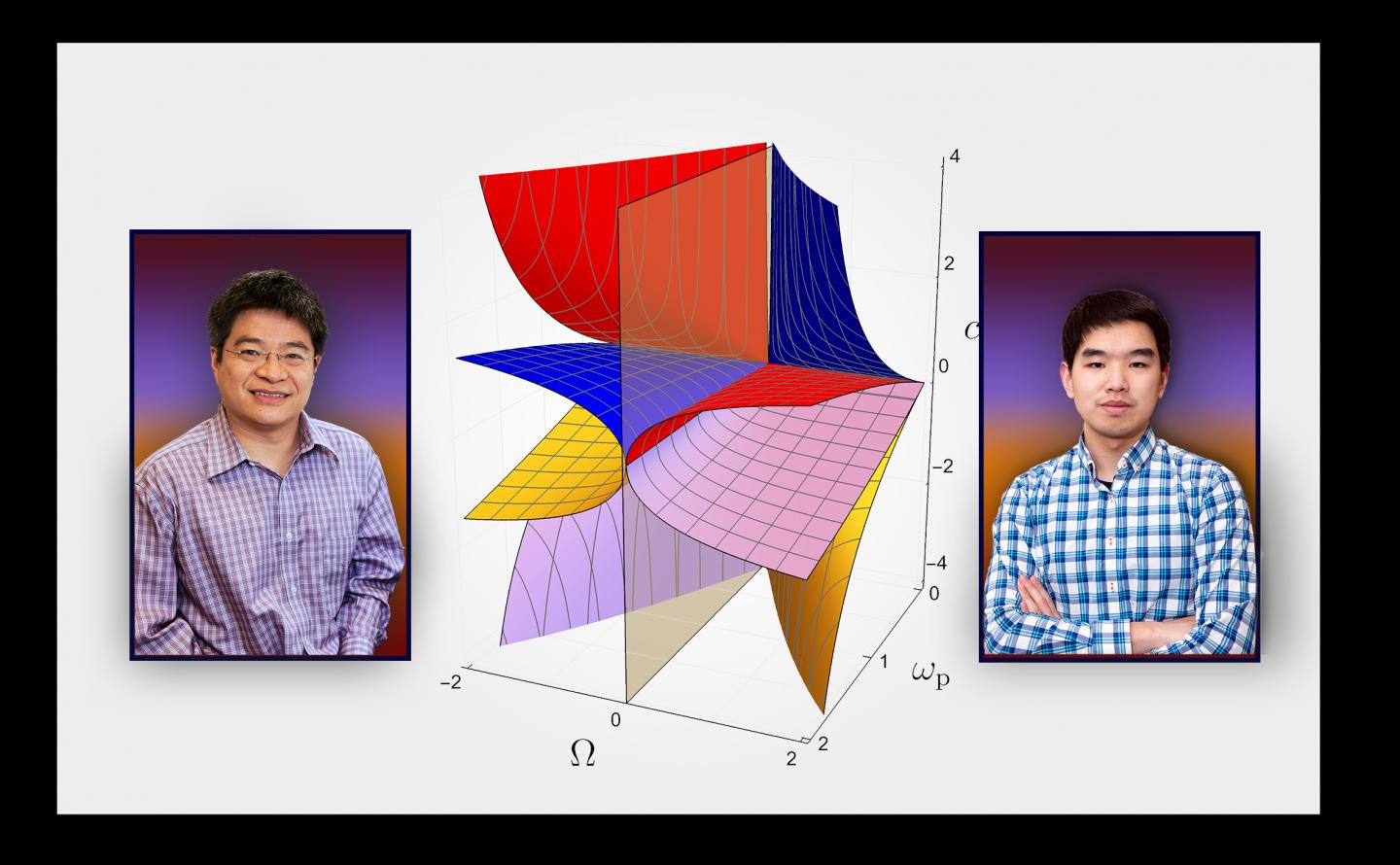 image: Physicists Hong Qin, left, and Yichen Fu with rendering of 10 phases of plasma from their Nature Communications paper.
