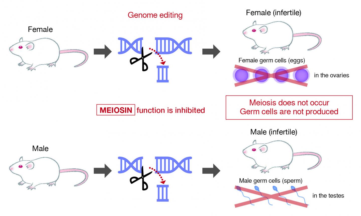 image: Researchers from Kumamoto University (Japan) performed genome editing experiments to verify that the Meiosin gene was indeed the trigger for meiosis. When they removed the gene in a murine experimental model, meiosis did not begin and germ cells were not produced rendering the animals infertile.