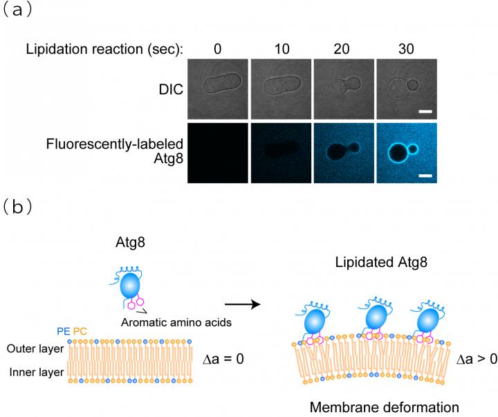 Drs. Nobuo Noda (Director) and Tatsuro Maruyama (Researcher) et al. at the Institute of Microbial Chemistry (BIKAKEN, Tokyo, Japan) discovered that lipidated Atg8(1), the most famous factor that mediates autophagy, has membrane perturbation activity and elucidated that this activity is responsible for efficient autophagosome formation.