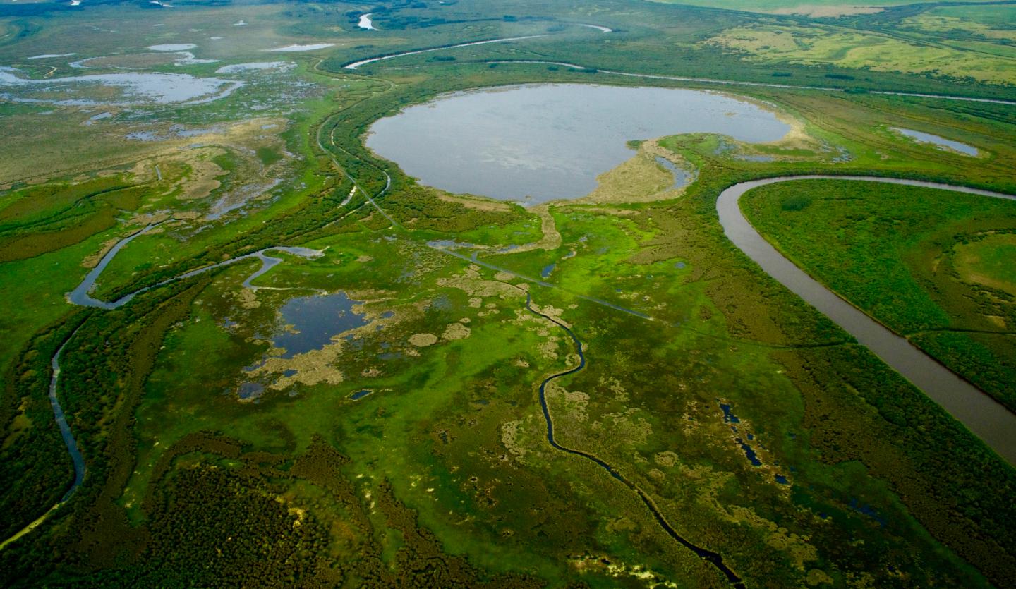 image: Aerial view of Wood Buffalo National Park's boreal wetland wilderness.