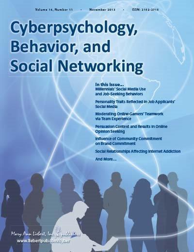 Cyberpsychology, Behavior, and Social Networking is a peer-reviewed journal published monthly online with Open Access options and in print that explores the psychological and social issues surrounding the Internet and interactive technologies, plus cybertherapy and rehabilitation. Complete tables of content and a sample issue may be viewed on the Cyberpsychology, Behavior, and Social Networking website.
