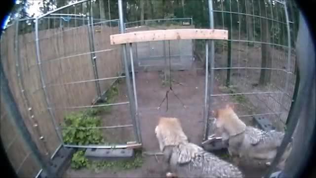 To test cooperation ability, the researchers created a test scenario that was designed to mimic a hunting situation, one in which multiple animals were trying to take down a larger herbivore, such as an elk or other horned prey. The concept was that, in the wild, one of the animals would need to draw the attention - and the dangerous horns - of the potential prey, so that the other could attack from the rear and bring the prey down. Thus the animal that took the most risk in the hunt also had to trust that it would be given a share of the reward in the end. The test apparatus involved a barrier separating the participants from a food reward, with two openings on opposite ends that were controlled by a researcher. When the first animal approached an opening, the door before it would shut while the opposite door remained open, allowing the partner to enter first and access the food. The door then remained open, so that other animal could then enter. Thus the animals had to cooperate in two ways - first by positioning themselves on opposite ends of the barrier and then by timing and coordinating their approaches towards the barrier.