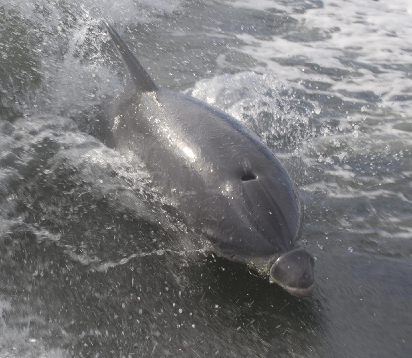 More than 1,000 bottlenose dolphins (Tursiops truncatus) live in the Indian River Lagoon year-round. The estuary system along the central east coast of Florida stretches about 250 kilometers and provides valuable shallow water habitat for this species. The lagoon also is popular for recreational fishing spots, which often coincide with bottlenose dolphin feeding habitats because they target the same species of fish. In fact, it very common to observe interactions between dolphins and recreational fishermen. These interactions include dolphins going after bait or captured fish, illegal feeding of dolphins, and dolphin encounters during release of undersized or non-targeted fish.