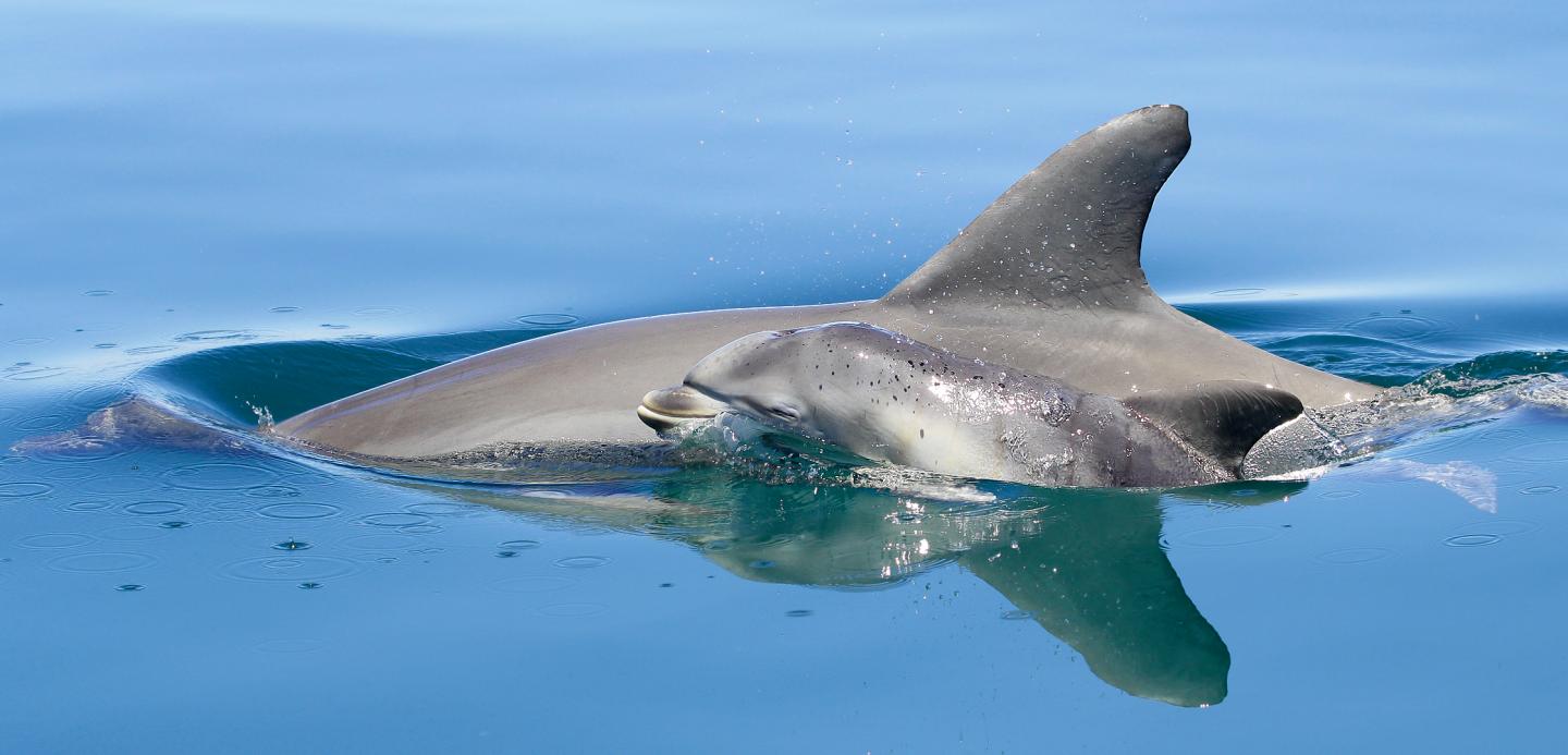 image: Southern Australian bottlenose dolphin and newborn calf. Photo Dr Fernando Diaz-Aguirre