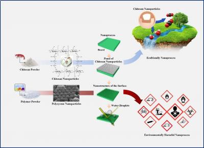 The team used biodegradable chitosan nanoparticles instead of polystyrene nanoparticles in the nanostructuring of antireflective, self-cleaning glass surfaces. The main advantage of the proposed process is that the use of ecofriendly material eliminates the microplastic waste, which occurs in nanostructuring processes.
