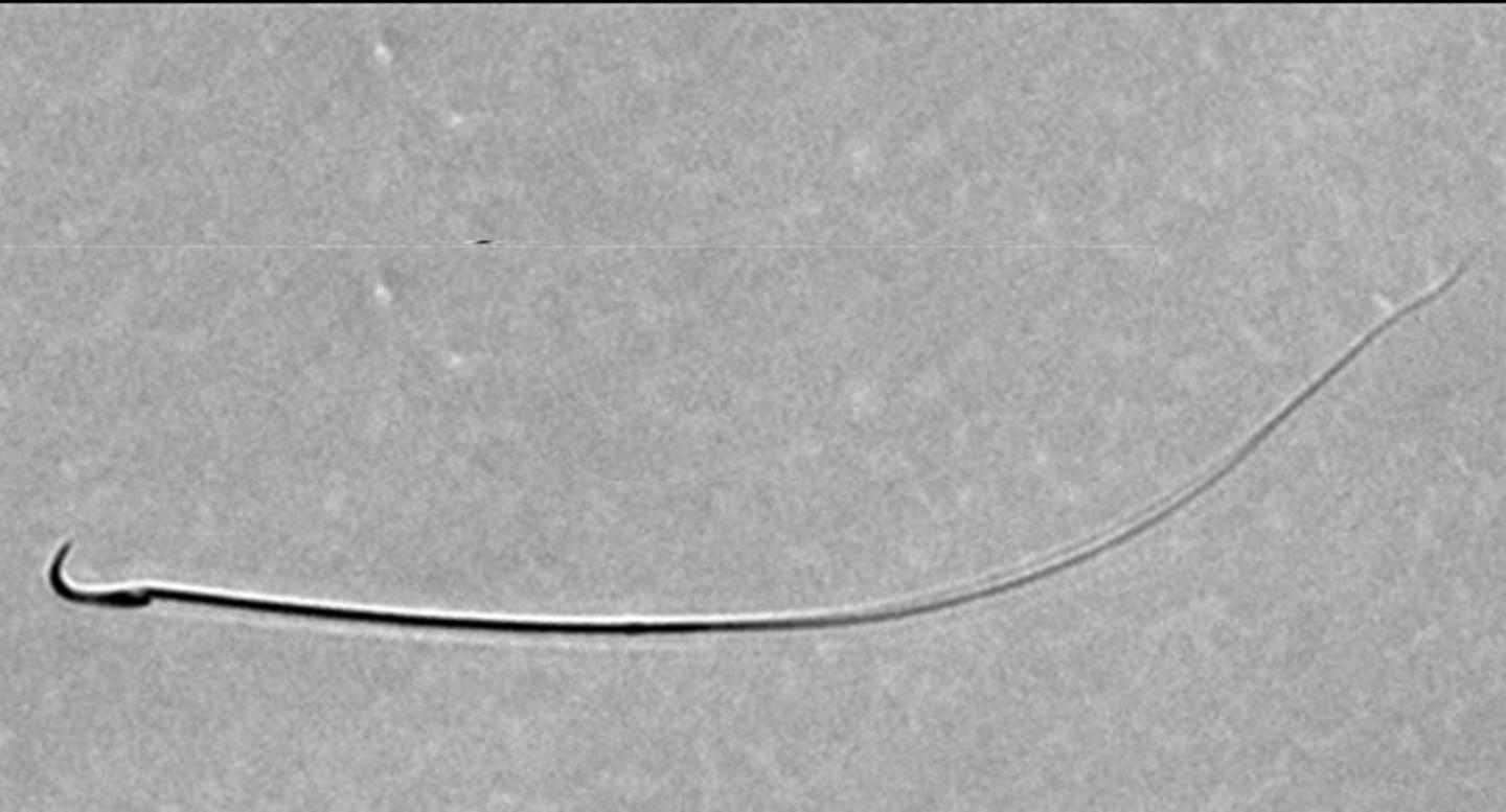 image: Image of a single rat spermatozoa. Total length: about 200μm