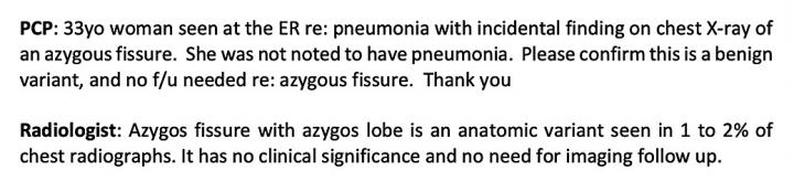 image:Â Example of interactions between primary care physician (PCP) and radiologist illustrate use of software. yo = year-old, ER = emergency room, f/u = follow-up.