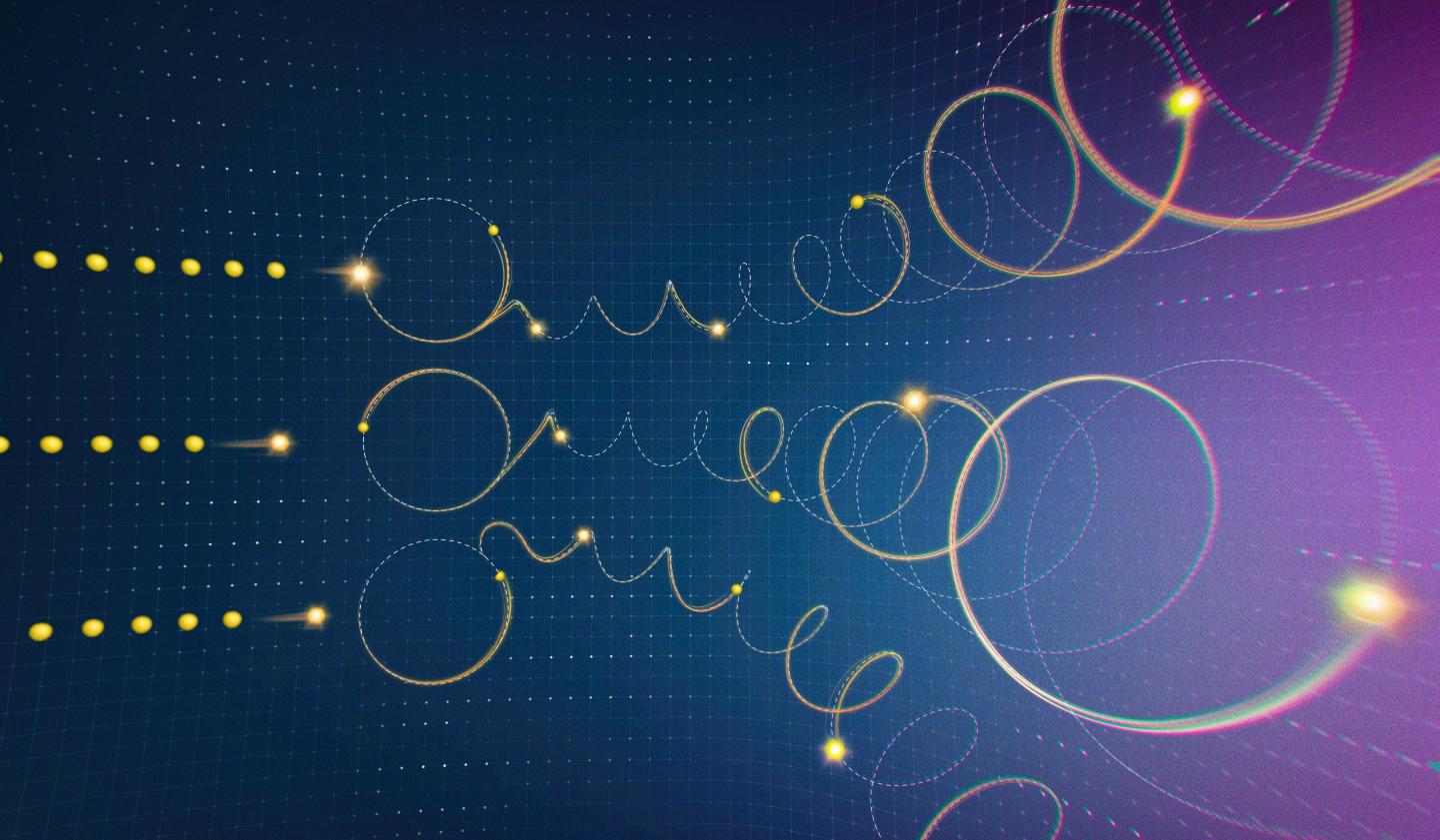 image: The illustration shows electrons in a topological quantum metal waiting to be activated by a magnetic field. Once they start moving, they follow a spiraling helix upwards - in contrast to the previously proposed picture of electrons moving in circles in a two-dimensional plane. This creates a special effect that is the foundation for promising topological quantum phenomena.