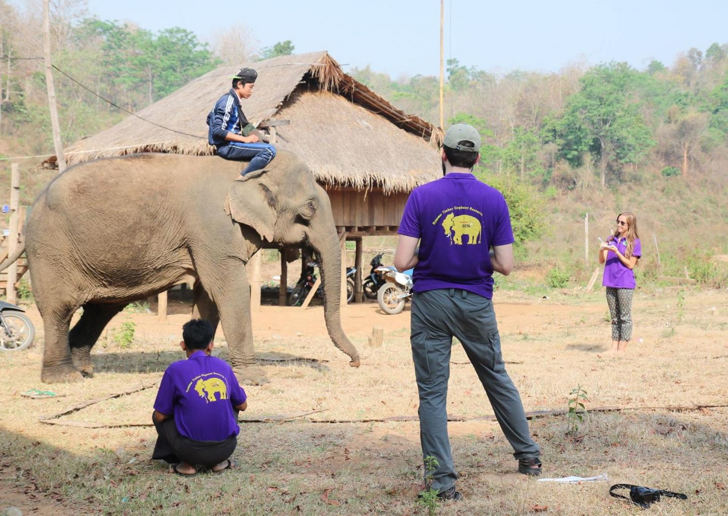 image: Researchers studying the semi-captive timeber elephants in Myanmar.
