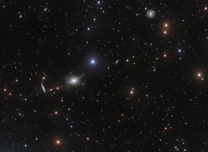 As well as the many elliptical (and a few spiral) galaxies in this remarkable 400-megapixel image, a colourful variety of bright foreground stars in our own Milky Way Galaxy also pepper the image. These stellar interlopers, such as the vividly blue HD 114746 near the centre of the image, are not the intended subjects of this astronomical portrait, but happen to lie between the Earth and the distant galaxies under study. Less prominent, but no less fascinating, are the faint tracks left by asteroids in our own Solar System. Just below NGC 5018, the faint streak left by the asteroid 2001 TJ21 (110423) -- captured over several successive observations -- can be seen stretching across the image. Further to the right, another asteroid -- 2000 WU69 (98603) -- left its trace in this spectacular image.