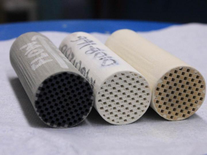 image: These are sample cores from particulate filters used in testing.