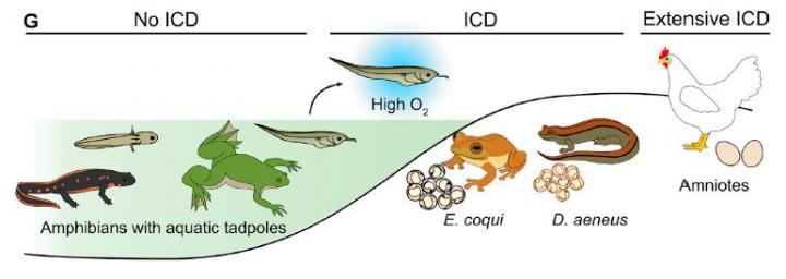 To gain an evolutionary perspective, researchers also studied cell death and ROS in two other amphibian species, the Japanese fire-bellied newt and the coquí frog. Like the African clawed frog, the Japanese fire-bellied newt had no interdigital cell death, but the coquí frogs had dying cells in their interdigital regions. Importantly, unlike the other two amphibians, the coquí frogs grow without a tadpole stage in terrestrial eggs and breathe oxygen from the air. "This way, we show both experimentally and comparatively that interdigital cell death is correlated with life history strategy and oxygen availability in tetrapods (four-legged vertebrates)," says Tanaka.