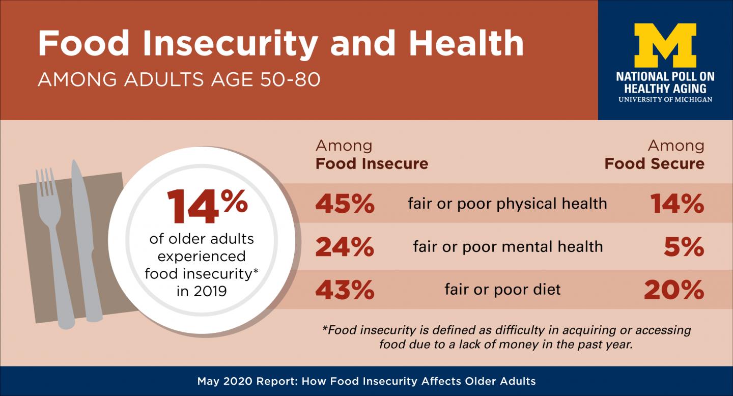 The new results come from the National Poll on Healthy Aging, carried out by the University of Michigan Institute for Healthcare Policy and Innovation with support from AARP and Michigan Medicine, U-M's academic medical center. It involved a national sample of more than 2,000 adults aged 50 to 80 who answered a range of questions about their food security in December 2019.