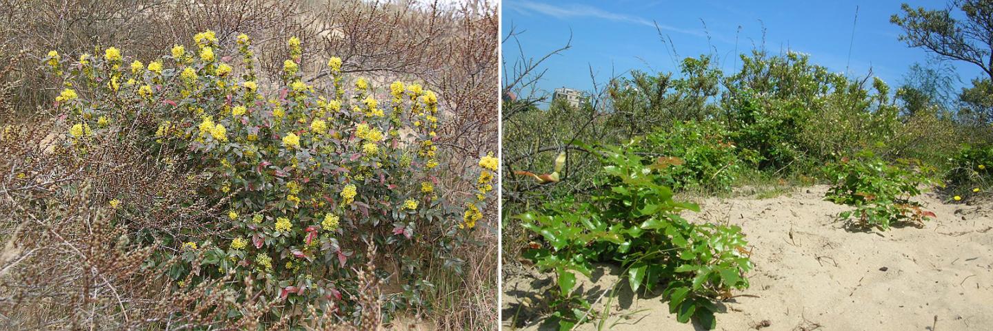 The Atlantic coastal dunes form a dynamic and diverse ecosystem, home to a large number of native species, many of which are regionally threatened. Embryonic dunes, shifting white dunes, moss dunes, dune grasslands, and dune slacks are considered high conservation value sites, according to the interpretation manual of European habitats. However, the dunes are highly affected by external influences, and one of the most important threats to their biodiversity are invasive non-native plant species. These plants often colonised the dunes as garden escapes or spread from garden waste dumps or public plantings. Oregon grape is one of the worst invaders amongst them.