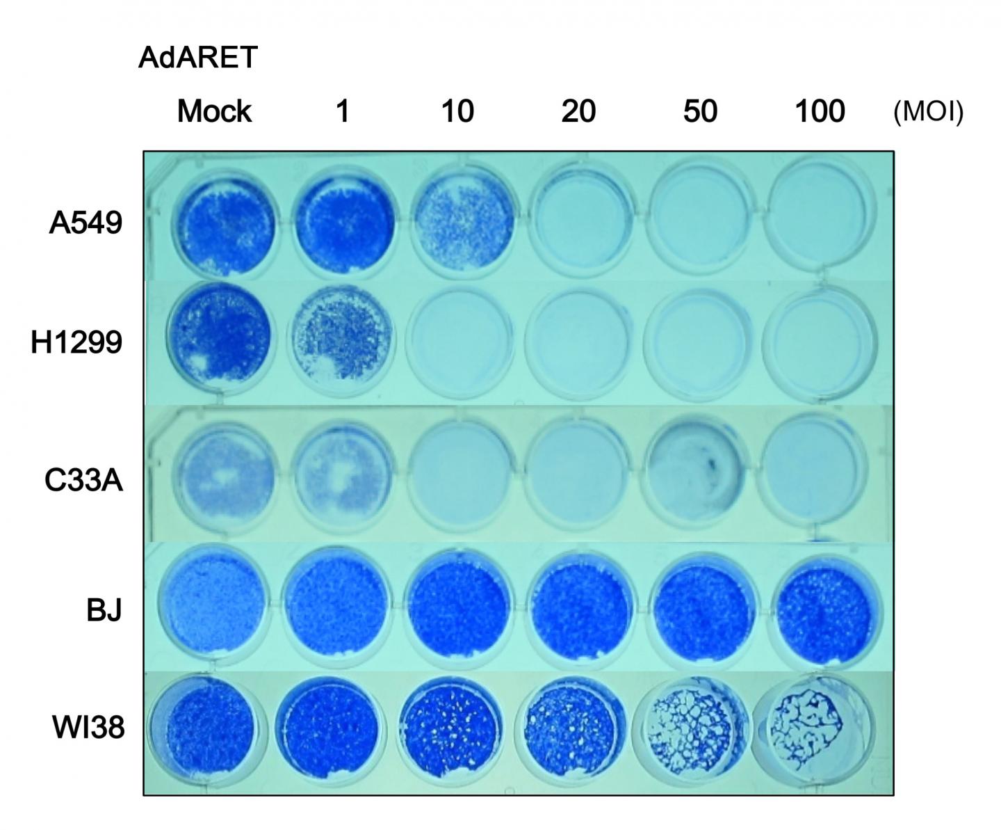 unaffected particularly with small doses of AdARET. Living cells were