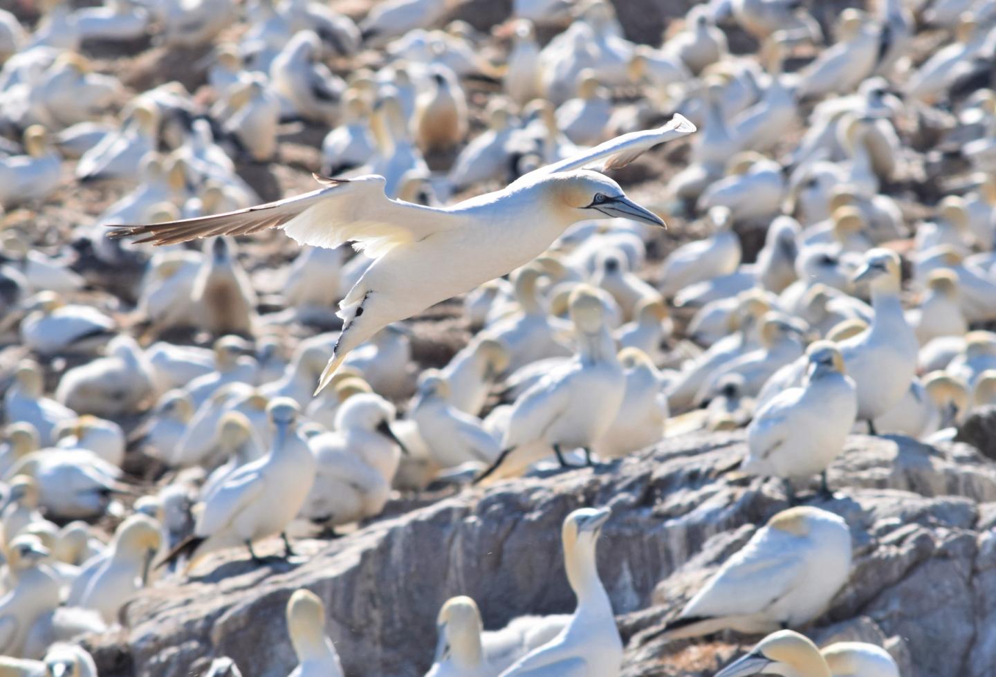 image: A gannet flying. Credit Dr Bethany Clark