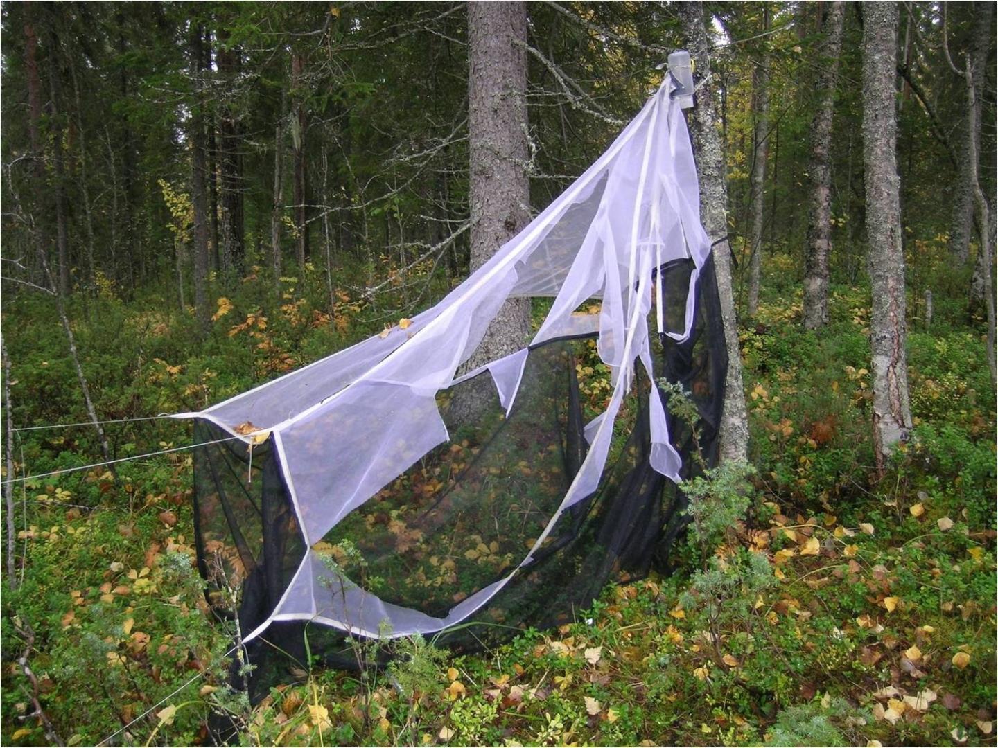 image: "Animals were not as kind to our traps as humans," recall the scientists behind the project. One of the Malaise traps, located in the Brännbergets Nature Reserve in Västerbotten, was destroyed by a bull moose rubbing his antlers against it.