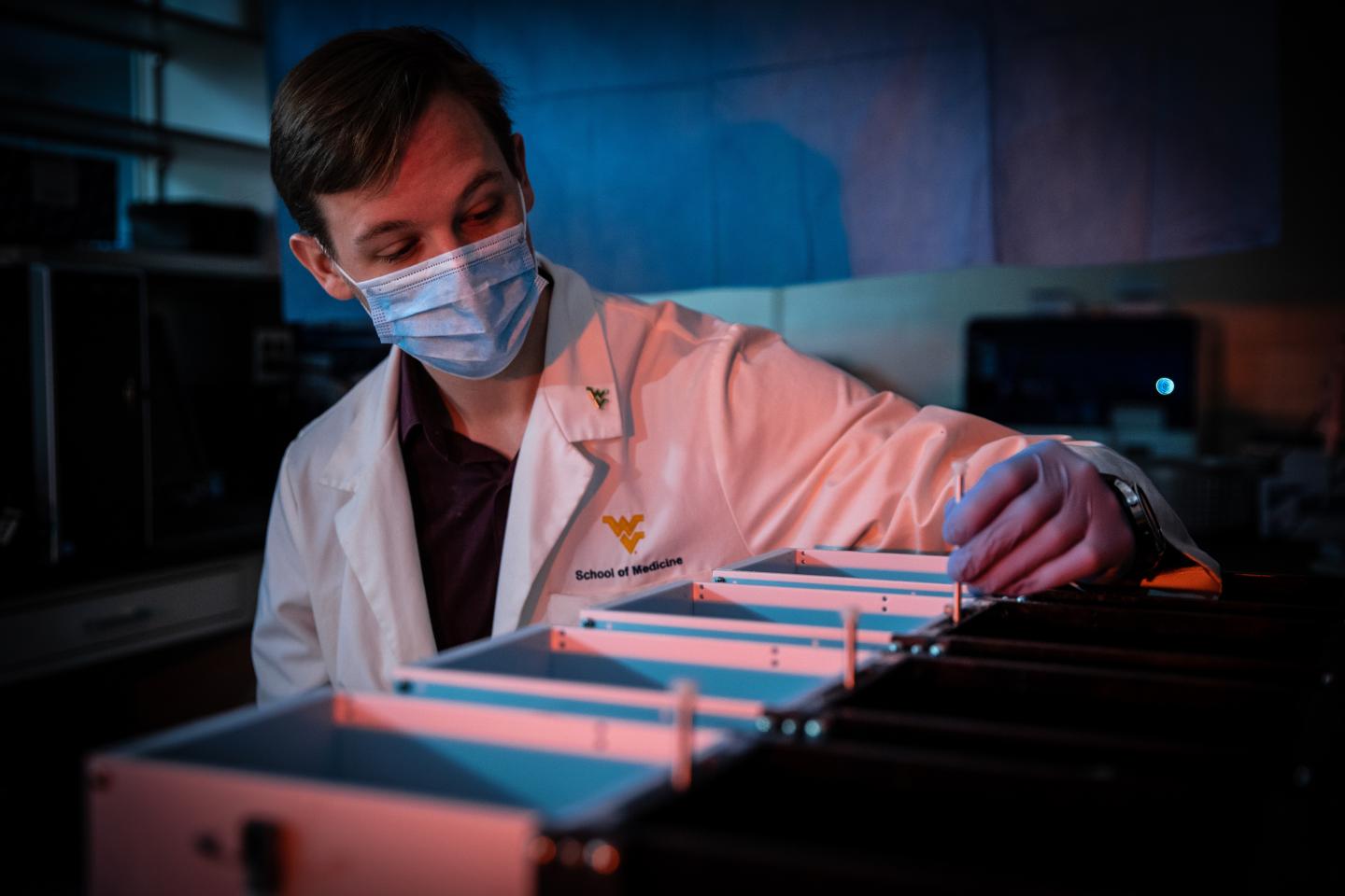 image: Shane Kaski, a graduate student in the WVU School of Medicine's M.D./Ph.D. program, researches the pain-relieving effects of morphine given in combination with nalfurafine, a newer opioid that interacts with nerve cells in a distinct way. His preclinical study showed that--in animal models--a nalfurafine/morphine combination alleviated pain more effectively than either drug alone. It also seemed to trigger less severe side effects than the older drugs in nalfurafine's class often do.