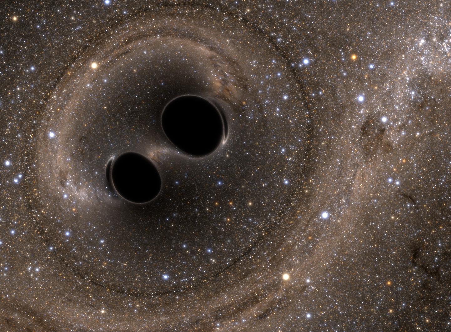 image: This simulation shows how a black hole merger would appear to our eyes if we could somehow travel in a spaceship for a closer look. It was created by solving equations from Albert Einstein's general theory of relativity using LIGO data from the event called GW150914.