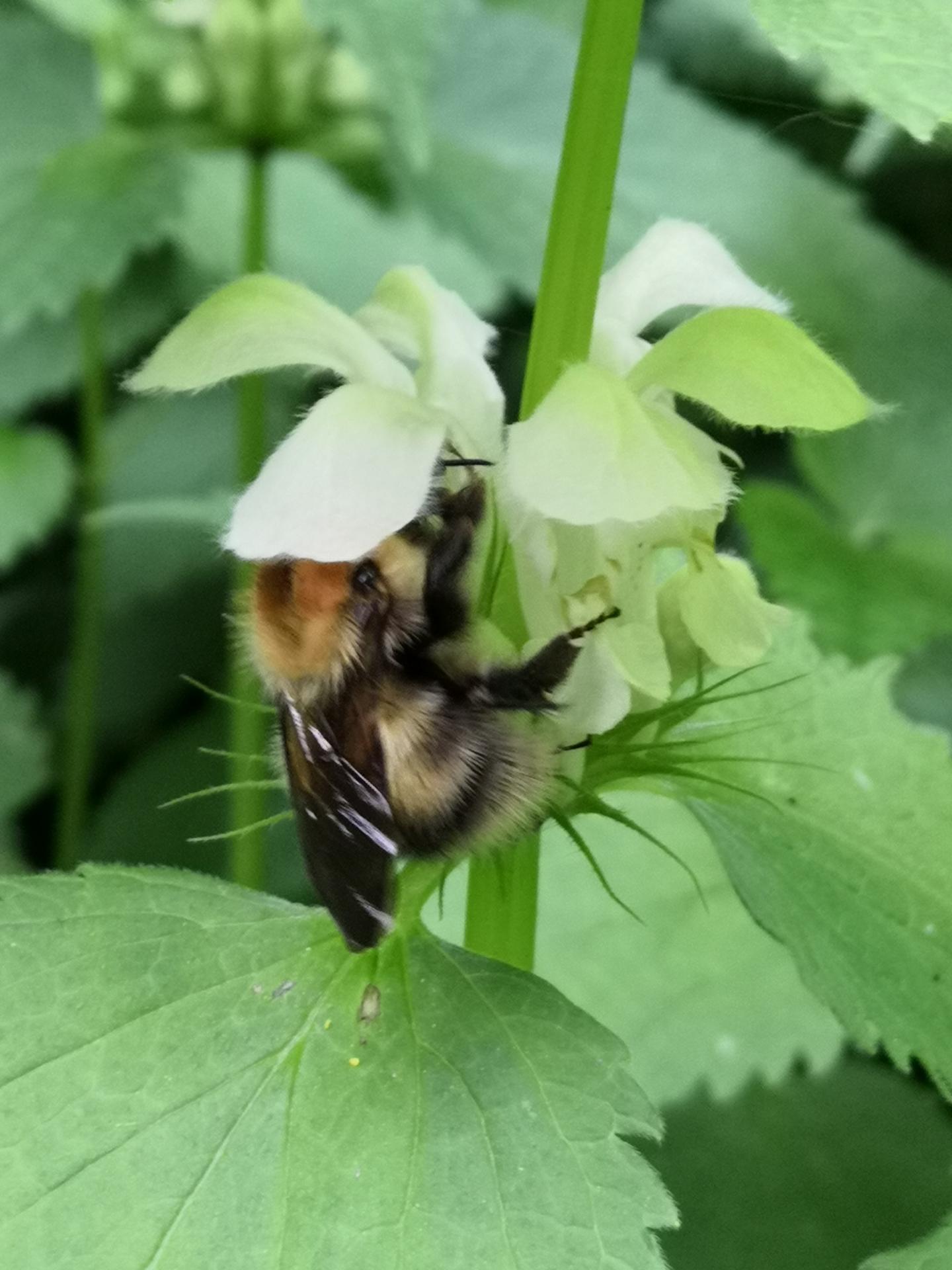 image: A Bombus consobrinus queen visiting a L. album var. barbatum flower in the Mitsumata population.