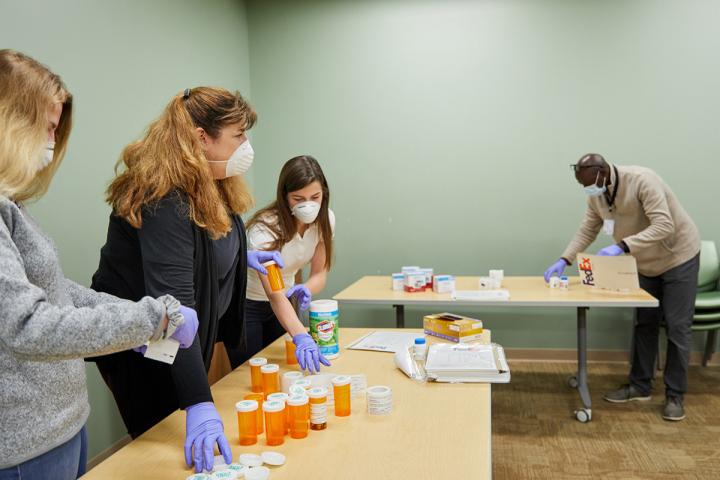 image: Staff of the Healthy Mind Lab at Washington University School of Medicine in St. Louis pack medication and medical equipment for participants in a COVID-19 clinical trial. The study indicated that the drug fluvoxamine may help prevent deterioration in COVID-19 patients, making hospitalization less likely.