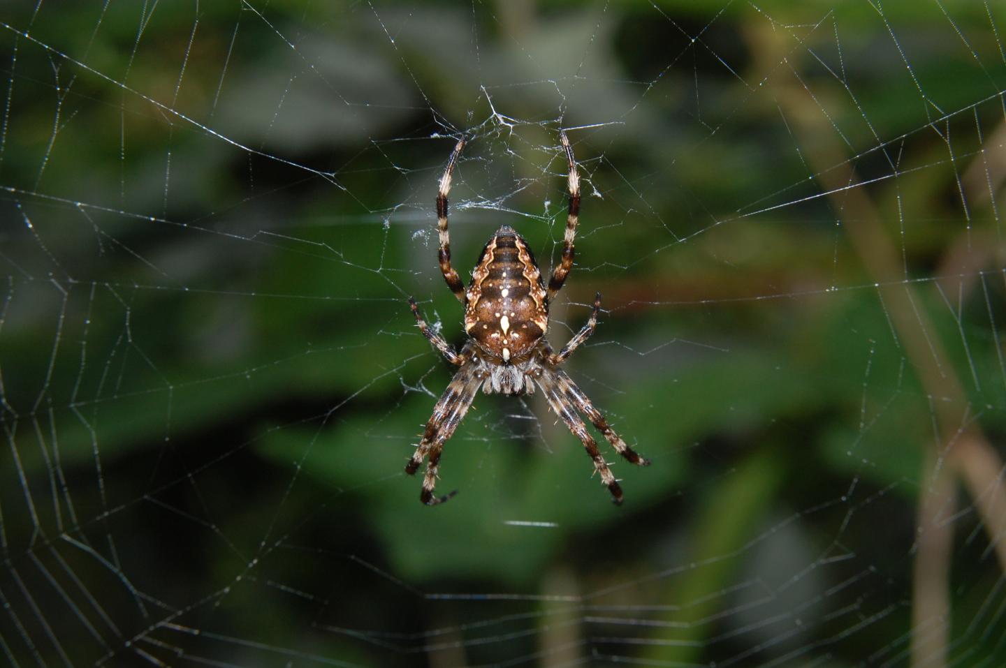 The European garden spider is easily recognizable by the bright, cross-shaped mark on the upper side of its abdomen. The females of this spider species which measures 10 to 18 mm as adults, legs not included, spins webs with a diameter of about 30 cm. In late summer 2019, the entomologists determined the population density of the European garden spider in the Swiss midland in 20 representative habitats: they counted the spider webs in test plots ranging from 200 to 1,000 square meters and converted these values to the number of webs per square meter.