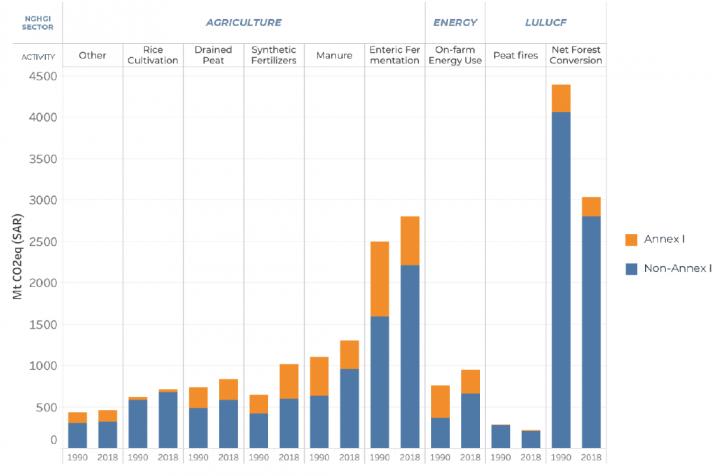 The study provides country-level datasets that are being refined ahead of the UN's Food Systems Summit, to be held in July. It considers emissions linked not just to production of livestock and crops, but from land-use changes at the boundary between farms and natural ecosystems, and from related manufacturing, processing, storage, transport and waste disposal.