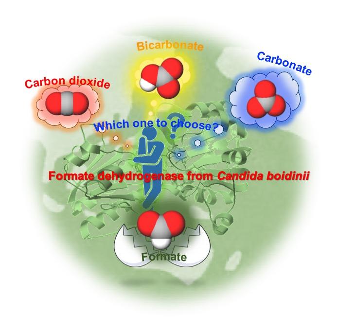 image: The group clarified for the first time whether formate dehydrogenase reduces carbon dioxide, biocarbonate ion, or carbonate ion to formic acid.