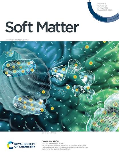 Schultz and fourth-year chemical engineering PhD student Nan Wu are studying covalent adaptable hydrogels (CAHs), which are being designed to release molecules as they lose polymer in the stomach but then re-gel on their own, which protects the molecules and allows them to stay active for targeted delivery in the intestines. The team’s microrheology research is featured in an article and inside cover illustration in the current issue of Soft Matter.