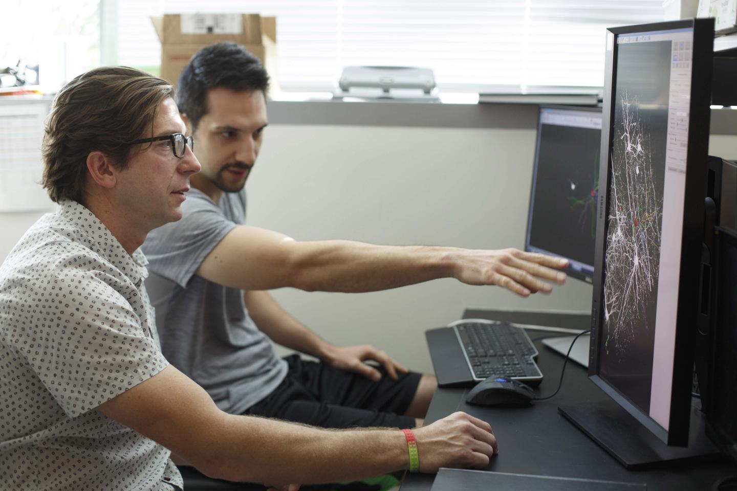 image: Scripps Research doctoral student Murat Kilinc and his mentor, neuroscientist Gavin Rumbaugh, Ph.D., collaborate on autism research at the institute's Jupiter, Florida campus.