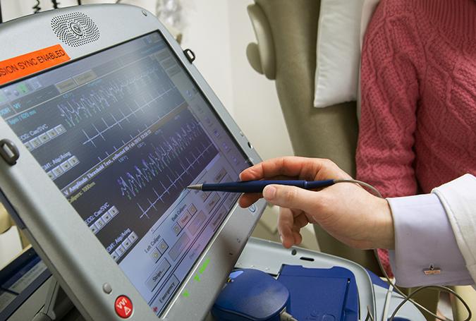 image: A cardiologist at the UW Medicine Regional Heart Center in Seattle goes over findings on a monitor with a patient. UW Medicine was one of the leaders on a large study of the genetic basis of electrical activity in the heart, and what some of the findings might mean in the development of heart rhythm problems.
