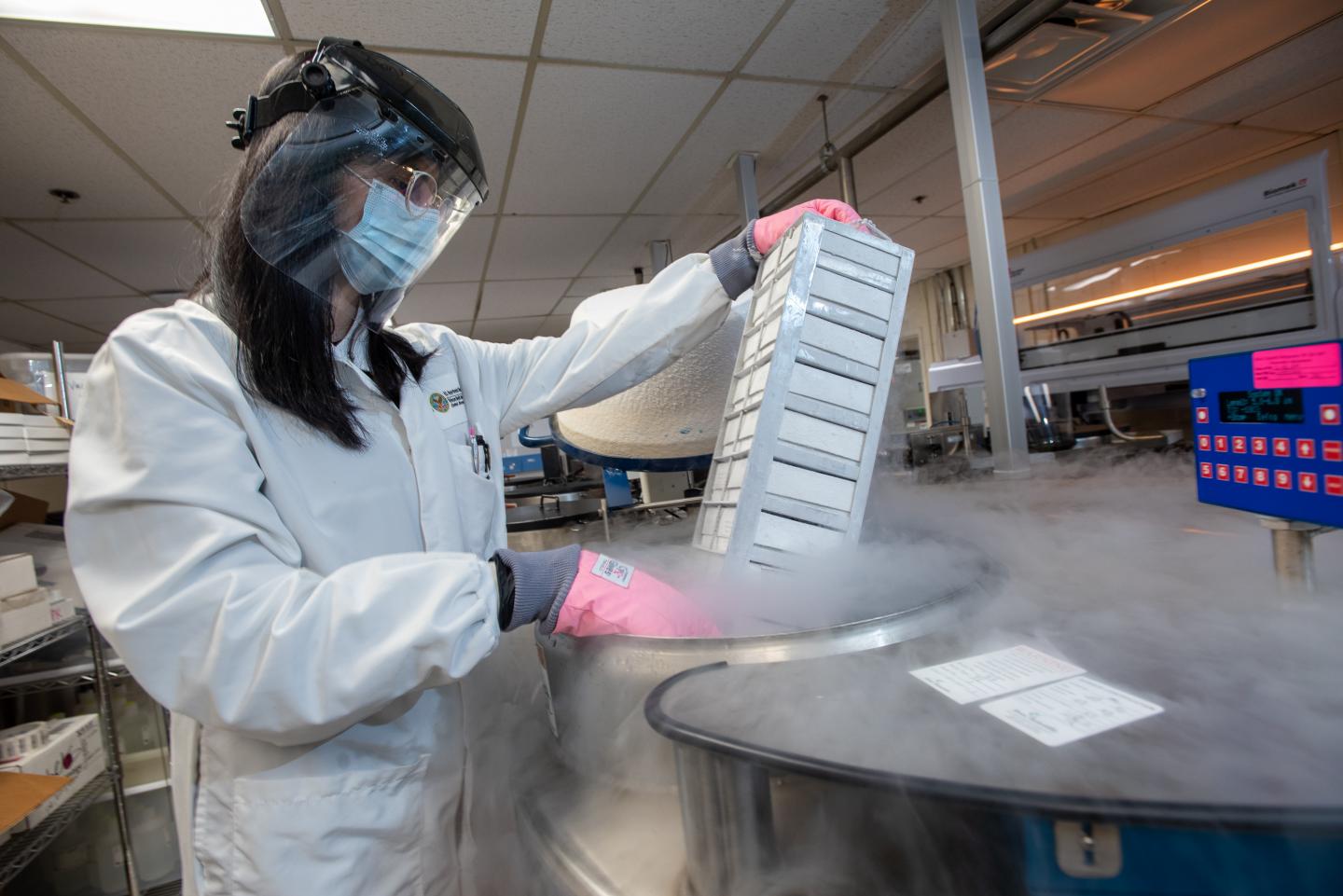 image: Health science specialist Yasamin Azadzoi removes Million Veteran Program samples from a cryotank at the Boston MVP facility.