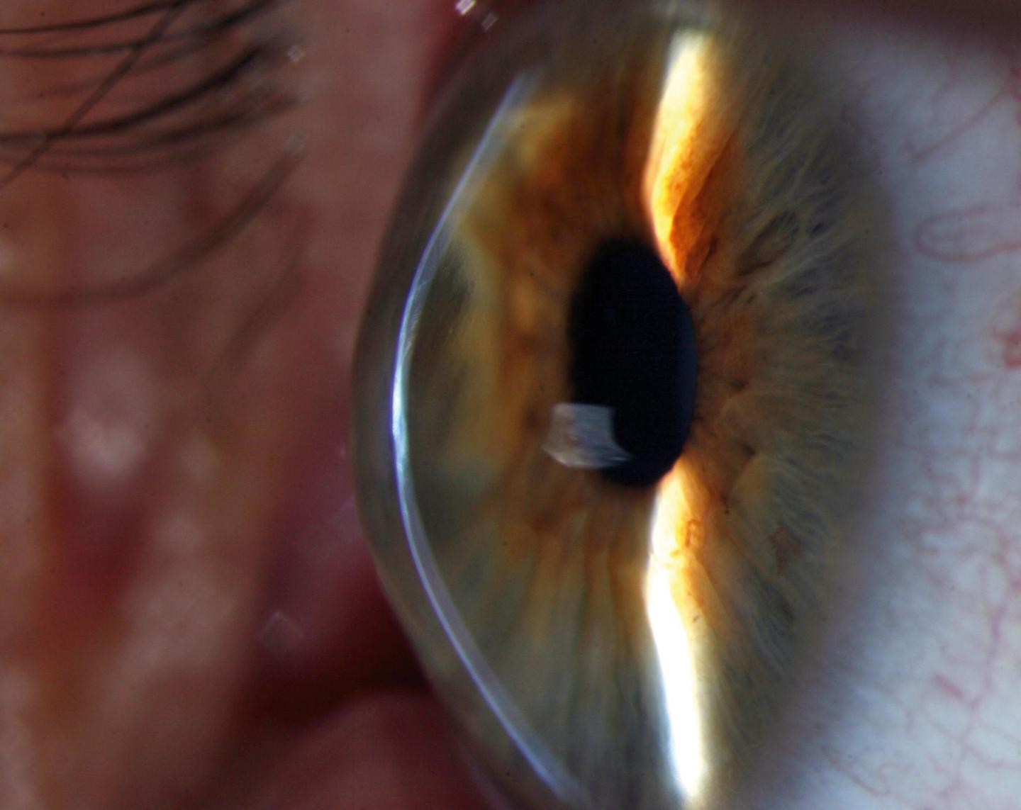 image: The cornea of a keratoconus patient, which is cone-shaped rather than curved.
