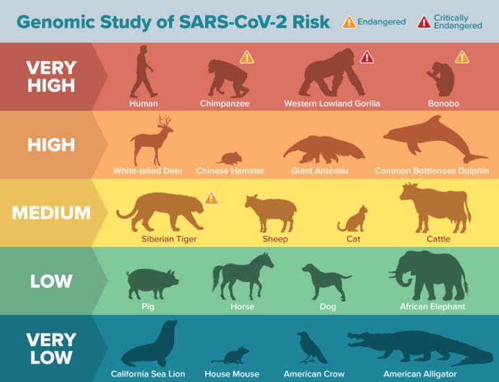 "The data provide an important starting point for identifying vulnerable and threatened animal populations at risk of SARS-CoV-2 infection," said Harris Lewin, lead author for the study and a distinguished professor of evolution and ecology at UC Davis. "We hope it inspires practices that protect both animal and human health during the pandemic."